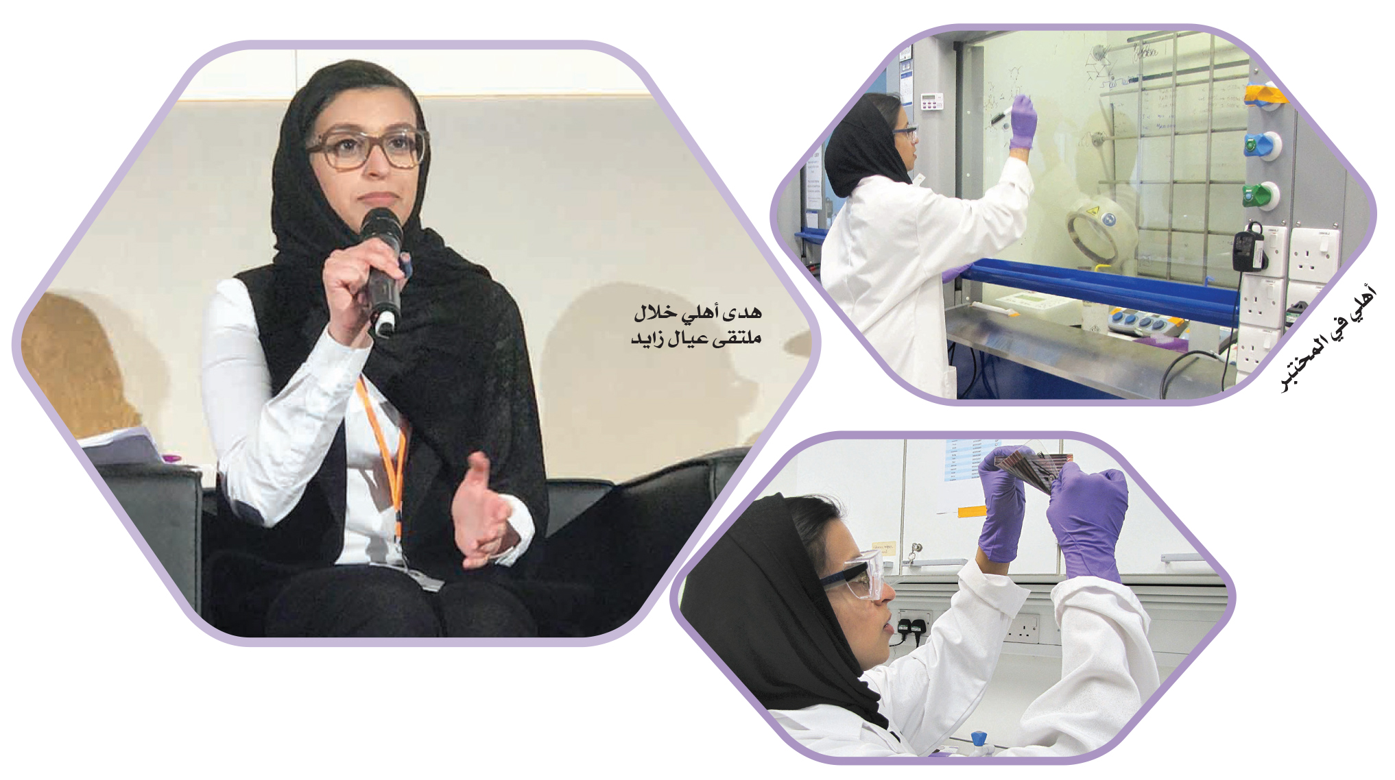 وتتابع: «تخرجت في البكالوريوس عام 2016 بامتياز مع مرتبة الشرف لأحصل بعدها على بعثة تميز لدراسة الدكتوراه في البلاستيكيات الإلكترونية في جامعة لندن الإمبريالية بعمر 22 سنة متعدية بذلك مرحلة الماجستير». وتقول: «حاليا في السنة الثانية من دراستي للدكتوراه عرضت في السنة أول فكرة عن بحثي لأعضاء المجلس الوطني الاتحادي لدولة الإمارات أثناء زيارتهم للجامعة، مضيفة كوني أول باحثة عربية في مركز البلاستيكيات الإلكترونية في جامعة لندن الإمبريالية، التي تعد الثانية عالمياً والأولى في المملكة المتحدة في مجال علوم المواد، أرغب أن تكون دولة الإمارات من أوائل مستخدمي أحدث تقنيات مصادر الطاقة النظيفة التي لم تتوافر إلى هذه اللحظة في السوق».
