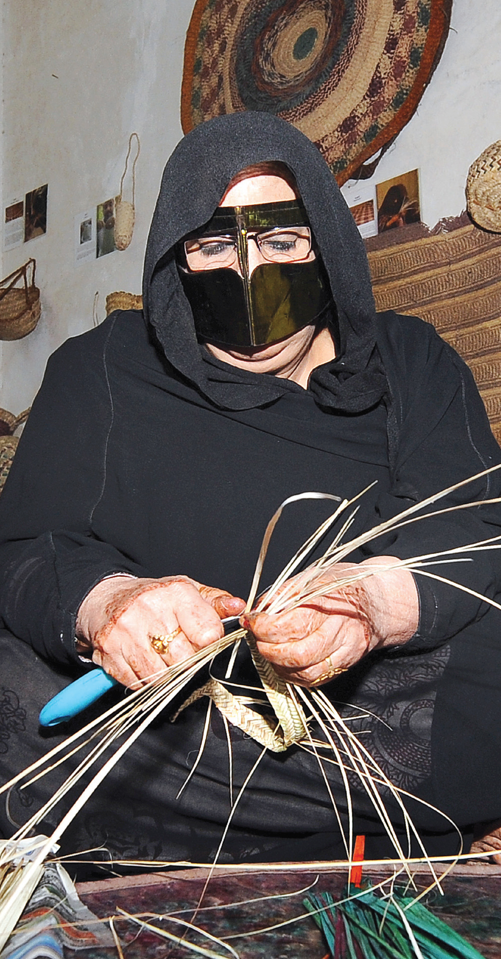 «سيف الخوص» حرفة تراثية تمتهنها النساء عادة، حيث يقمن بتجديل فروع النخيل بدقة ليصنعن أدوات منزلية عدة، تتميز بتناغم الألوان، لتجسد في النهاية لوحة متكاملة تضج بالأصالة....