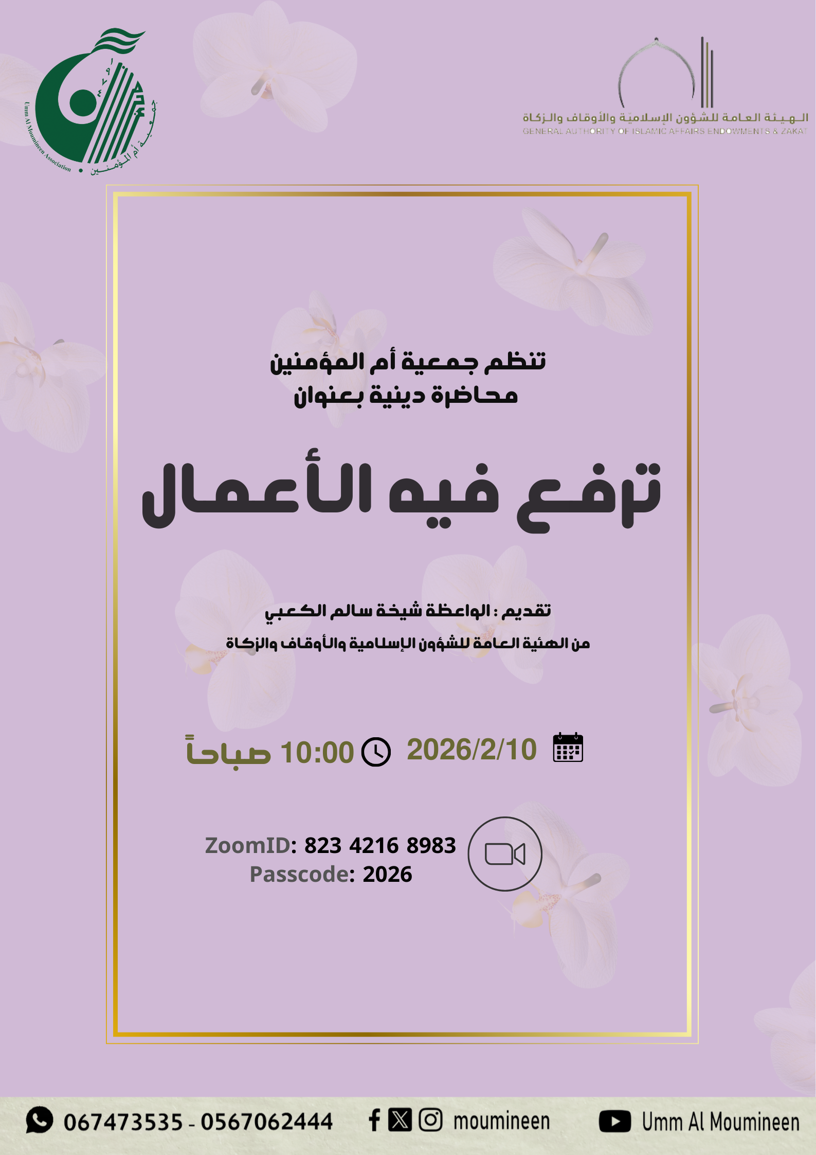 محاضرة " ترفع فيه الاعمال "محاضرة دينية قدمها الواعظة شيخة الكعبي – من الهيئة العامة للشؤون الإسلامية والأوقاف والزكاة...