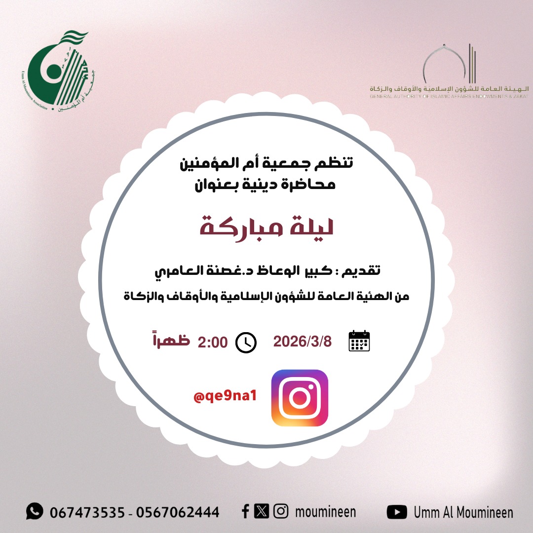 محاضرة " ليلة مباركة " محاضرة دينية قدمها كبير الوعاظ د.غصنة العامري – من الهيئة العامة للشؤون الإسلامية والأوقاف والزكاة...