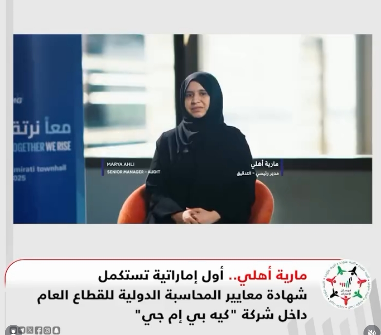 أول إماراتية تستكمل شهادة معايير المحاسبة الدولية للقطاع العام داخل شركة “كيه بي إم جي”.. مارية أهلي تعرب عن فخرها بهذا الإنجاز، وتطلعها لرؤية المزيد من الإماراتيات يحققن إنجازات مماثلة ويتولين أدوارًا قيادية، خاصة في المجالات التخصصية الدقيقة...