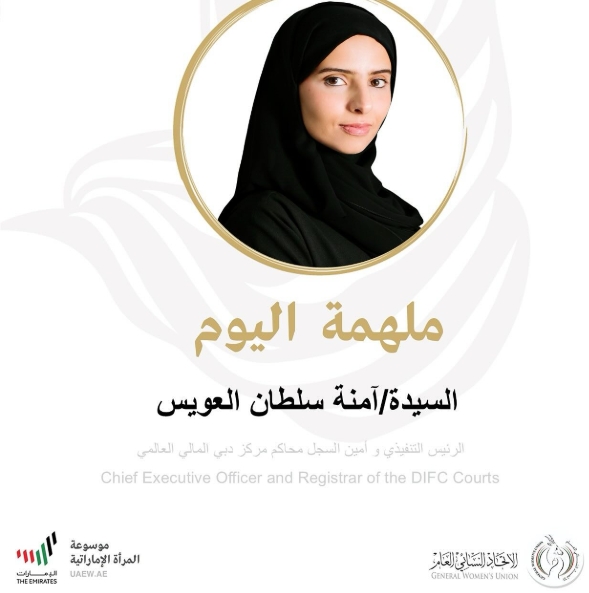 آمنة سلطان العويس المسجل العام – محاكم مركز دبي المالي العالمي تشغل آمنة العويس منصب المسجل العام لمحاكم مركز دبي المالي العالمي، حيث تتولى الإشراف على سير عمليات الخدمات المساندة ودعم التطوير الاستراتيجي للمحاكم والمشاريع الخاصة. تقود مبادرات نوعية في التحول الرقمي، من أبرزها مبادرة “محاكم المستقبل” ...