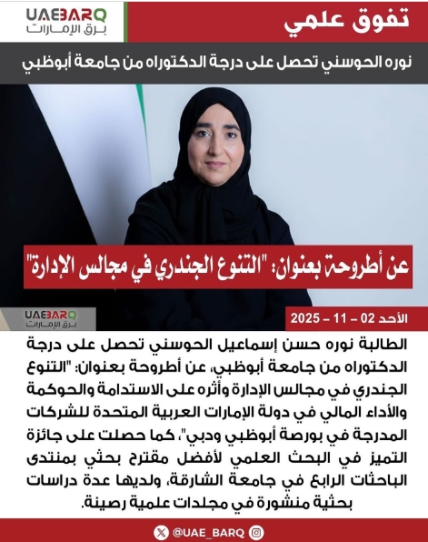 نوره الحوسني تحصل على درجة الدكتوراه من جامعة أبوظبي...