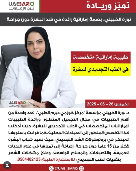 نورة الخييلي.. بصمة إماراتية رائدة في شد البشرة دون جراحة...