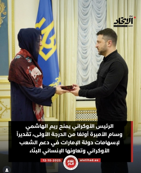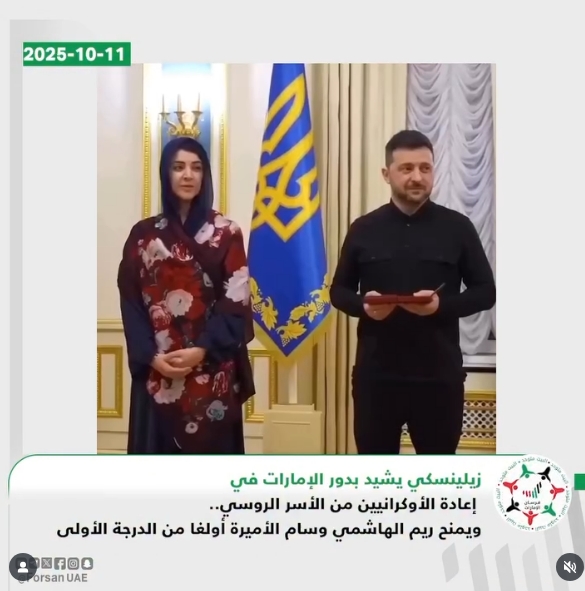 زيلينسكي يشيد بدور الإمارات في إعادة الأوكرانيين من الأسر الروسي.. ويمنح ريم_الهاشمي وسام الأميرة أولغا من الدرجة الأولى...