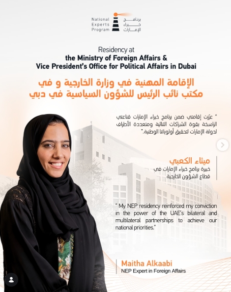 اكتسبت ميثاء محمد الكعبي، خبيرة برنامج خبراء الإمارات في قطاع الشؤون الخارجية، رؤية قيّمة خلال فترة إقامتها المهنية في مكتب نائب الرئيس للشؤون السياسية في دبي، وفي مكتب وزيرة دولة لشؤون التعاون الدولي في وزارة الخارجية في أبوظبي....