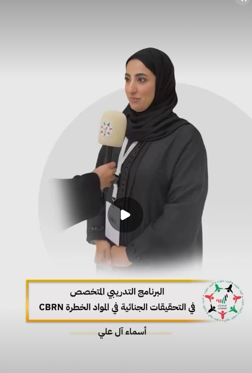 أسماء آل علي، رئيس قسم الأمن البيولوجي في #وزارة_التغير_المناخي_والبيئة: البرنامج التدريبي المتخصص في التحقيقات الجنائية في المواد الخطرة يهدف لرفع جاهزية الدولة وتطوير آلية العمل...