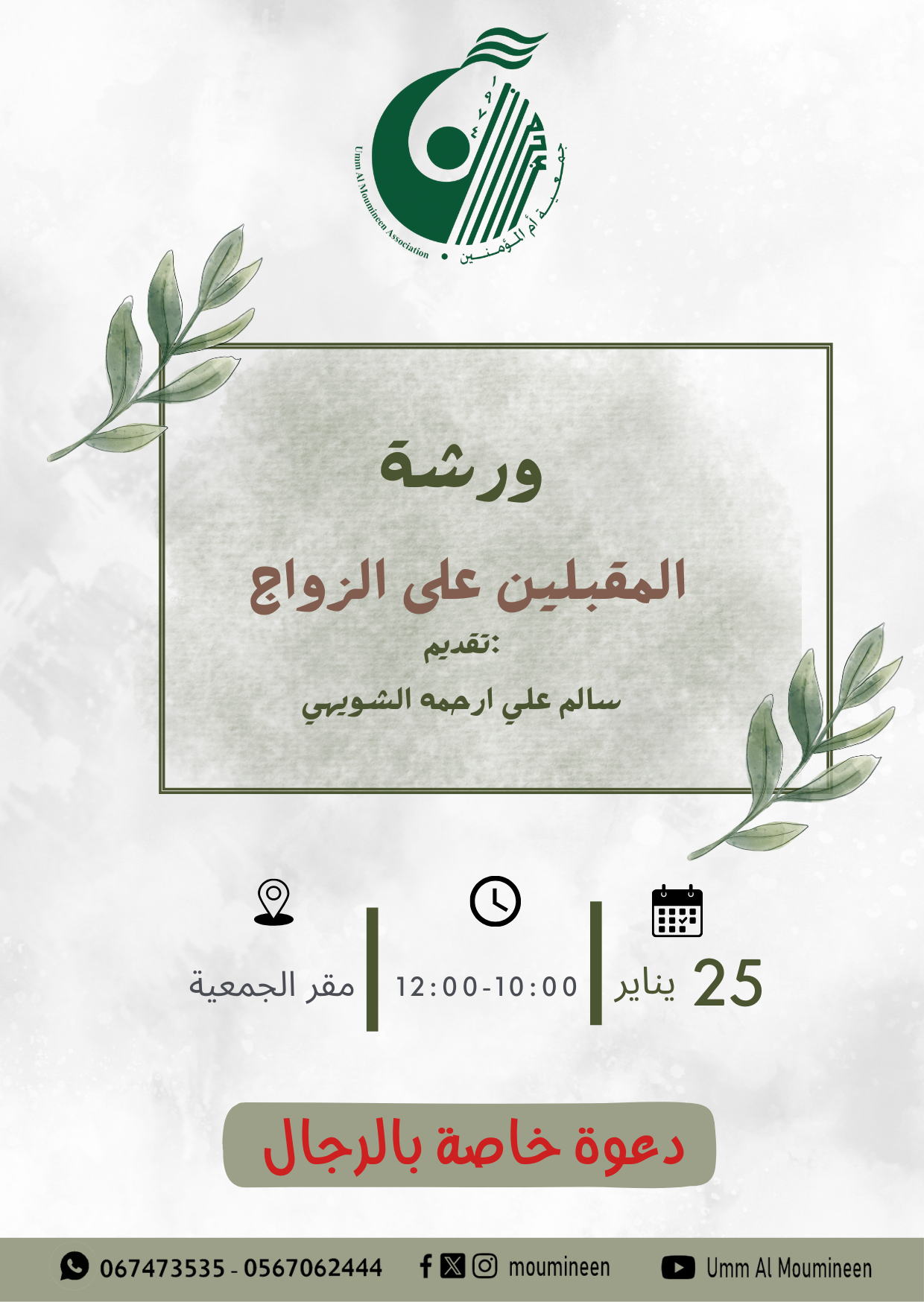 ورشة " للمقبلين على الزواج " قدمها الاستاذ سالم على ارحمه الشويهي للرجال خاصة بمقر الجمعية بتاريخ 25/1/2026 ...