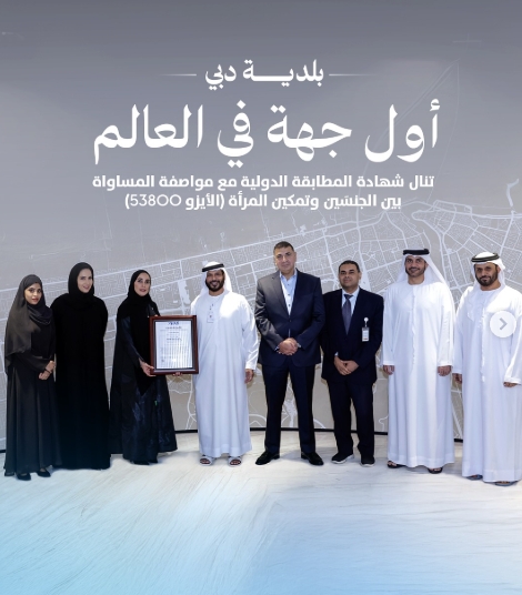 تزامناً مع #يوم_المرأة_الإماراتية و#عام_المجتمع، حصلت #بلدية_دبي على شهادة المطابقة الدولية مع المواصفة العالمية للمساواة بين الجنسَين وتمكين المرأة (الأيزو 53800)، لتصبح أول جهة على مستوى العالم تنال هذا الاعتماد من شركة "جلوبال تي يو في" الرائدة عالمياً في مجالات التدقيق والفحص ومنح شهادات المطابقة مع المواصفات العالمية....