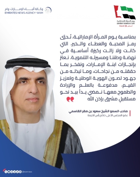 سعود بن صقر: بمناسبة يوم_المرأة_الإماراتية، نُحيّي رمز المحبة والعطاء والخير، التي كانت ولا زالت ركيزة أساسية في نهضة وطننا ومسيرته التنموية. نعتز بإنجازات ابنة #الإمارات، ...