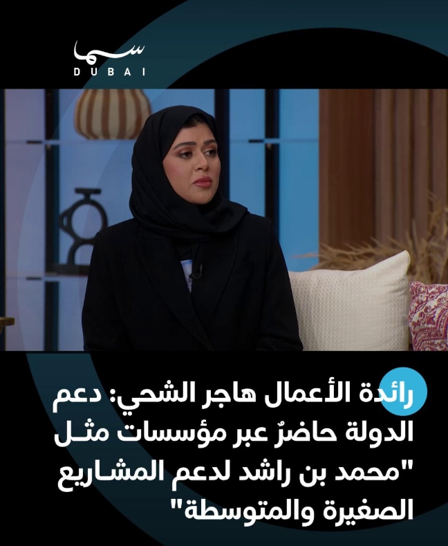 رائدة الأعمال هاجر الشحي: دعم الدولة حاضرٌ عبر مؤسسات مثل "محمد بن راشد لدعم المشاريع الصغيرة والمتوسطة"...