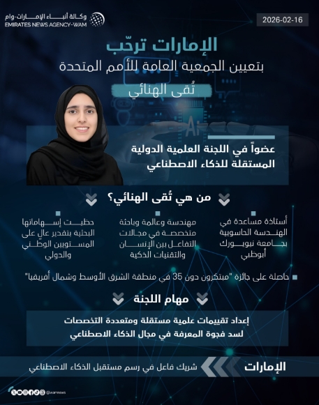 #الإمارات ترحّب بتعيين الجمعية العامة للأمم المتحدة تُقى الهنائي عضواً في اللجنة العلمية الدولية المستقلة للذكاء الاصطناعي ...
