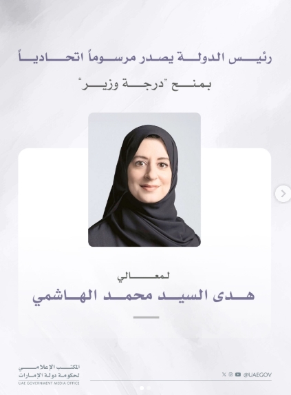 رئيس الدولة يصدر مرسوماً اتحادياً بمنح معالي هدى الهاشمي درجة وزير...