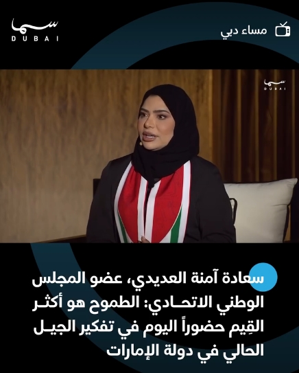 سعادة آمنة العديدي، عضو المجلس الوطني الاتحادي: الطموح هو أكثر القِيم حضوراً في تفكير الجيل الحالي...