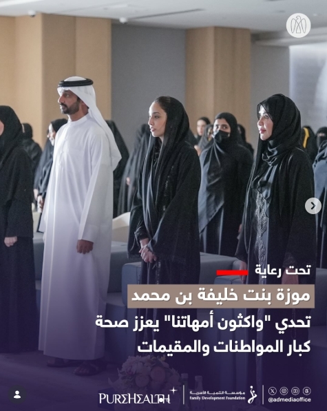 تحت رعاية موزة بنت خليفة بن محمد، تحدي "واكثون أمهاتنا" المجتمعي، الذي أطلقته "بيورهيلث" ومؤسسة التنمية الأسرية يسهم في صحة وجودة حياة كبار المواطنات والمقيمات في أبوظبي، من خلال تشجيع وقياس النشاط البدني....
