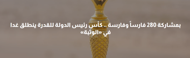 اطلق خلال شهر فبراير 2023، سباق بطولة كأس صاحب السمو الشيخ محمد بن زايد آل نهيان، رئيس الدولة، حفظه الله، للقدرة، على ميادين قرية الإمارات العالمية للقدرة بالوثبة، بدعم وتوجيهات سمو الشيخ منصور بن زايد آل نهيان، نائب رئيس مجلس الوزراء، وزير ديوان الرئاسة، رئيس قرية الإمارات العالمية للقدرة....