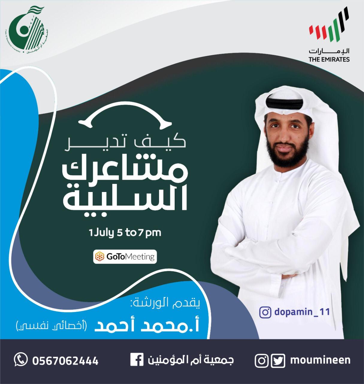 ورشة عمل " كيف تدير مشاعرك السلبية" تقديم محمد أحمد 1/7/2020...