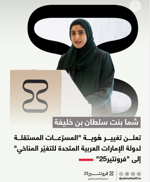 ضمن فعاليات منتدى “من الأفكار إلى الأثر”، شما بنت سلطان بن خليفة تعلن تغيير هُوية “المسرّعات المستقلة لدولة الإمارات العربية المتحدة للتغيّر المناخي” إلى “فرونتير25”، بصفتها مؤسسة استشارية تركِّز على تعزيز التعاون من أجل ترجمة الأفكار إلى أثر ملموس....