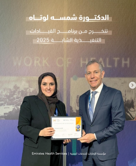 تهنئ #مؤسسة_الإمارات_للخدمات_الصحية الدكتورة شمسه لوتاه، مدير إدارة الصحة العامة، بمناسبة تخرجها من برنامج القيادات التنفيذية الشابة 2025، الذي نظمه مؤتمر الاتحاد الدولي للمستشفيات 2025 في جنيف، بما يعكس التزام المؤسسة بتعزيز الكفاءات المواطنة وتطوير القيادات في القطاع الصحي....