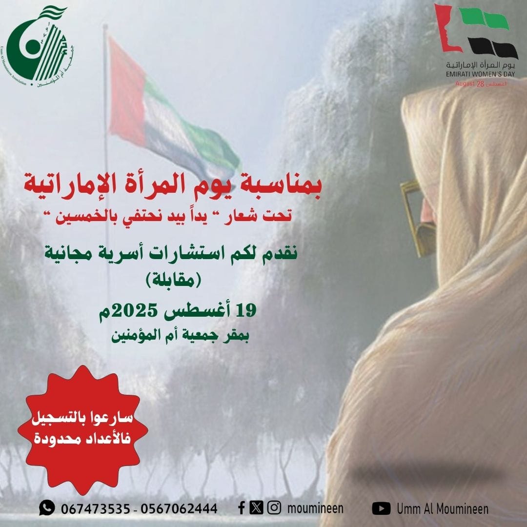 استشارات أسرية مجانية بالتزامن مع يوم المرأة الإماراتية تم استقبال استشارات أسرية مجانية في مقر الجمعية، بتاريخ 28أغسطس 2025 ...