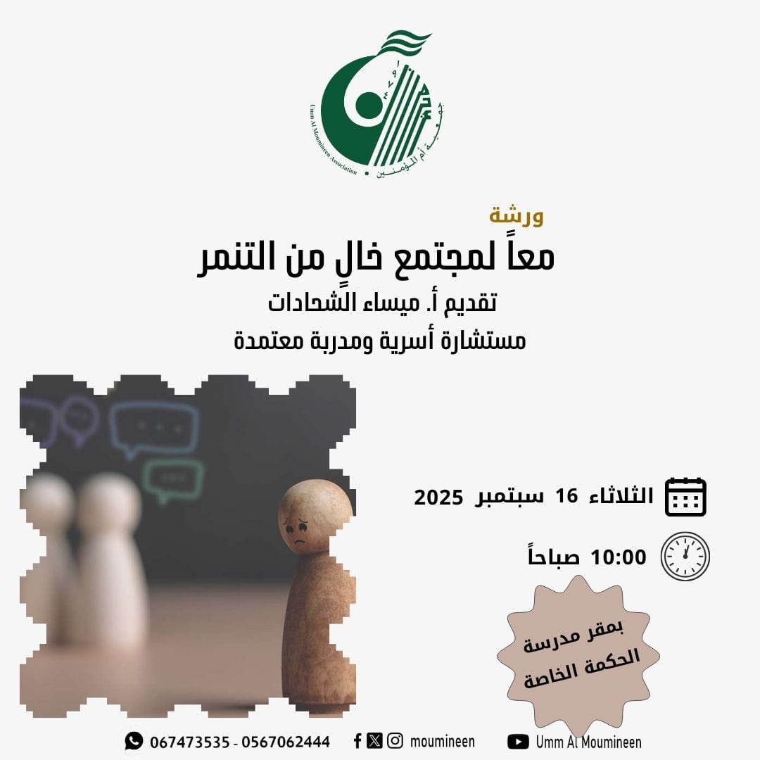 محاضرة " مجتمع خال من التنمر" قدمت أ.ميساء الشحادات - مستشارة أسرية ومدربة معتمدة ، لطالبات مدرسة الحكمة الخاصة بتاريخ 16 سبتمبر 2025 بمقر مدرسة الحكمة ...